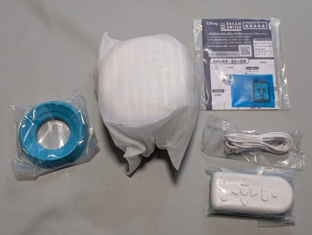 台座、本体、説明書、ソフト(DXセット)、USBケーブル、リモコン。