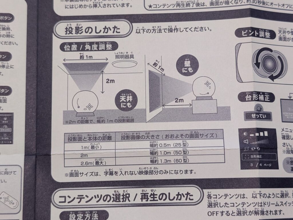 平らで模様の無い面に投影する必要があるので、購入前に置き場所を検討するのがおすすめです。