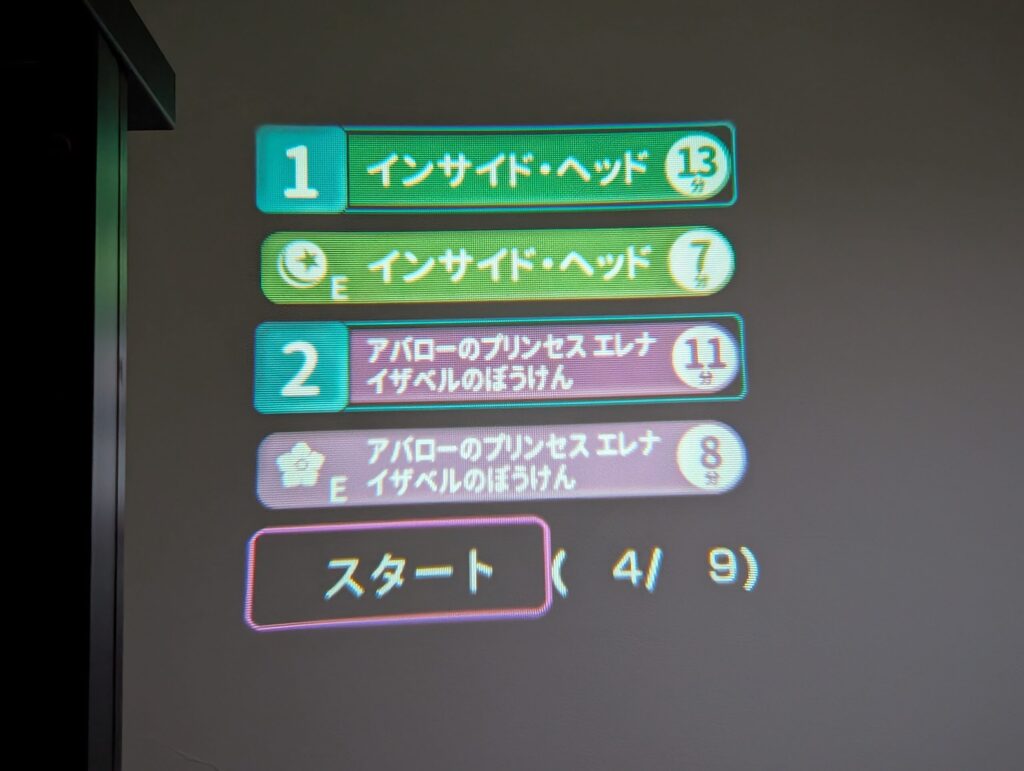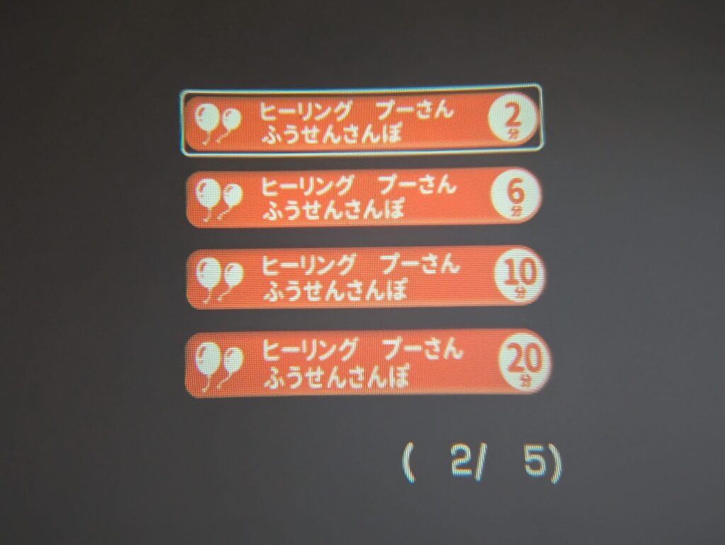 布団に入ってからは今日見たいコンテンツを相談して5つ選択(10個まで連続再生できる)。