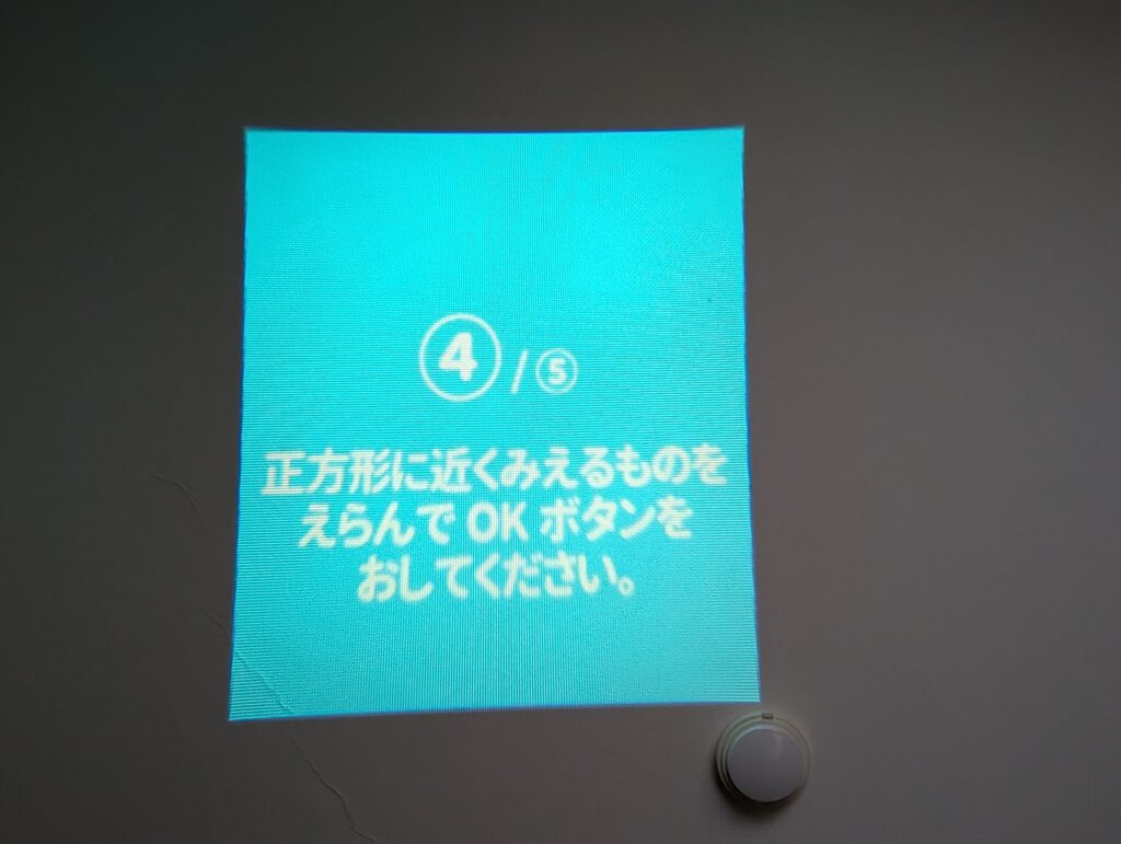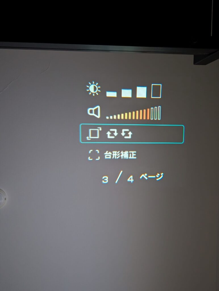 ピント調整は本体レンズを回して対応し、台形補正は5段階の設定から投影しながら適したものを選択するようになっています。