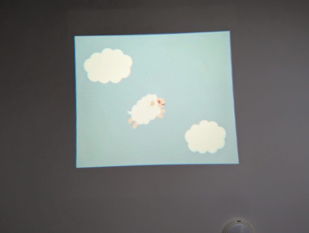 プロジェクターなので、投影時には部屋の電気は消す必要があります。電気をつけた状態では見づらいです。となりの部屋の電気がついている状態でも少し影響するので、両親の生活上電気が必要な部屋と隣接していると少し見づらいかもしれません。